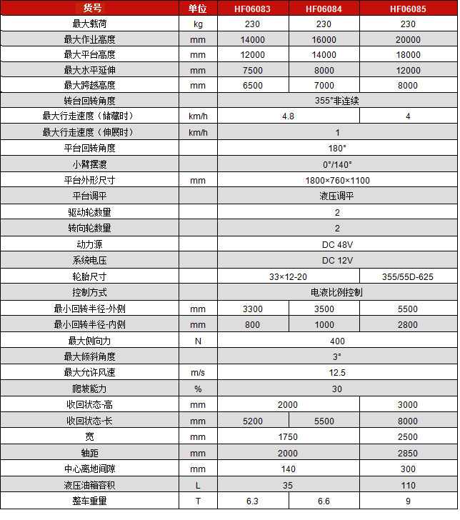 自動調(diào)平工作平臺液壓旋轉(zhuǎn)工作平臺霍爾效應(yīng)全比例控制器行駛確認(rèn)AC電源線接至工作平臺喇叭計時器傾斜警報全時正牽引驅(qū)動雙速行駛馬達(dá)應(yīng)急泵CAN總線智能控制超載限制選配特征2.4m平臺籃擺動軸工作平臺旋轉(zhuǎn)門工作平臺備用杠桿焊機(jī)預(yù)接組件焊接線接至工作平臺空氣管接至工作平臺液壓油冷卻器惡劣環(huán)境套件航空防撞組件工具托盤警報套件平臺工作燈