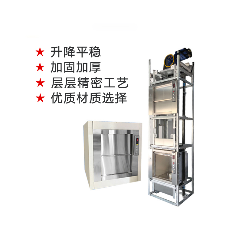 傳菜機是由雜物電梯演化過來的,他用于賓館,酒店,飯店,醫院,部隊,學校,等地的廚房內部,多是用來樓上樓下的傳送菜盤,人們都稱為傳菜梯,中國質量監督檢查總局條文指定的名詞則還是叫做雜物電梯,他并沒有脫離出來。說道雜物電梯,我們就再提一句,雜物電梯又稱為傳菜電梯,食梯,餐梯或多用雜物電梯,是用于8層一下的固定式升降機器,且禁止人員入內。隨著時代的發展,傳菜梯已經成為各大酒店飯店的必需品,他安全可靠,使用壽命長,舒適靈活,節能環保,實在是廚房人員的終身良伴。